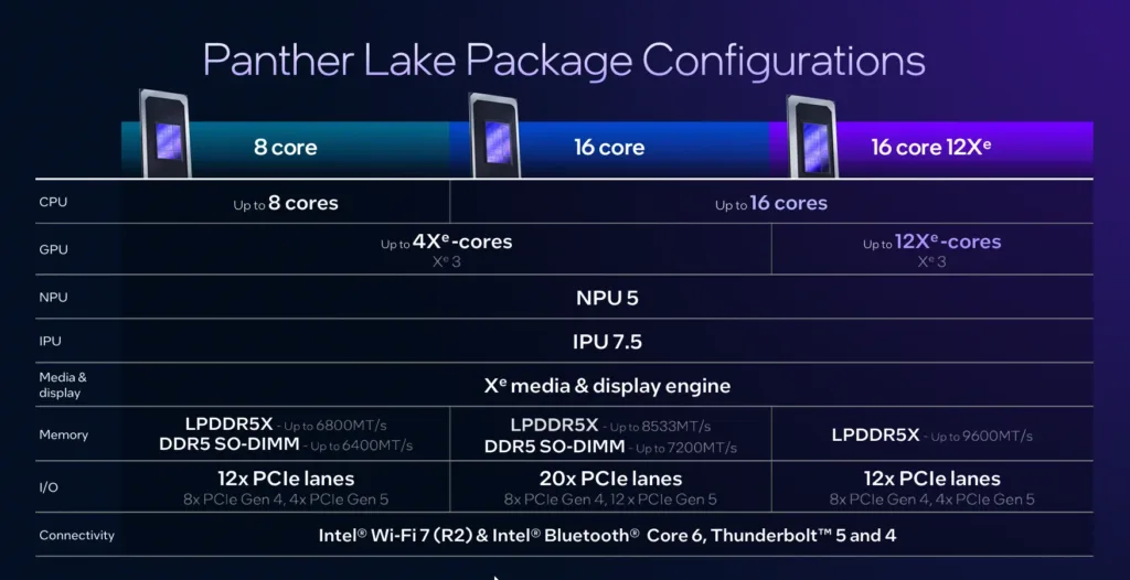 Intel is launching three Panther Lake variants, each targeting different laptop segments: